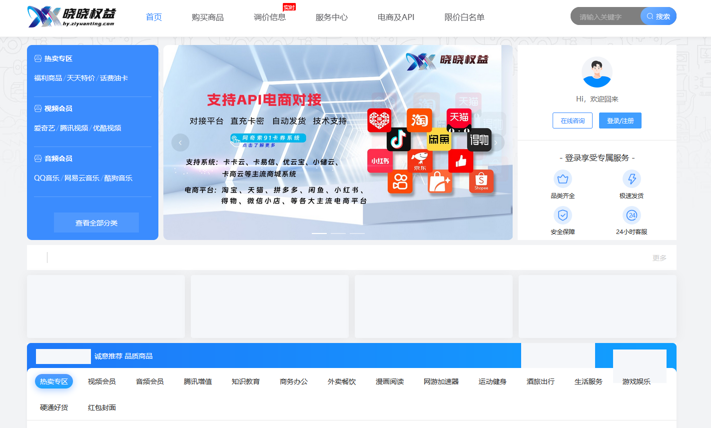 七年运营,值得信赖;晓晓会员权益网丨影低价影视会员批发充值购买平台网站商城(https://hy.ziyuanting.com)是一个专注提供各大平台低价会员渠道虚拟货源购买充值,影视会员批发,人工代充会员的网站平台-平台包含爱奇艺会员|腾讯会员|优酷会员|迅雷会员|腾讯视频会员|qq会员|芒果tv会员|喜马拉雅会员|b站大会员|百度网盘会员|微博会员|网易云音乐等VIP影视频会员账号低价充值平台