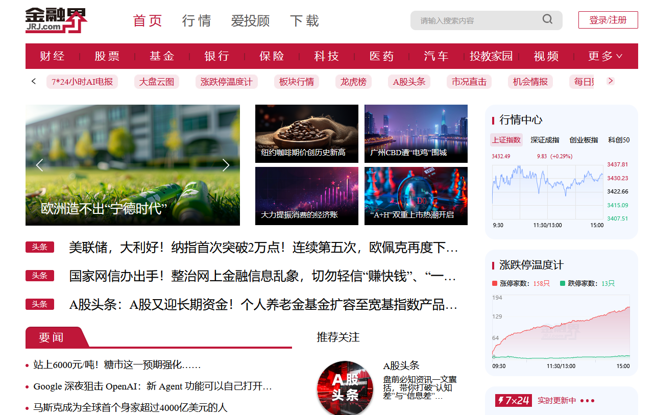 金融界是国内领先的金融信息服务平台,持续为市场和投资者提供快速、准确、全面、客观、专业的金融信息服务,包括股票、财经、银行、保险、金融、证券、港股、美股、债券、信托、科技、消费、商业、汽车、房产、医药、期货、外汇、ESG、上市公司等资讯和数据等。