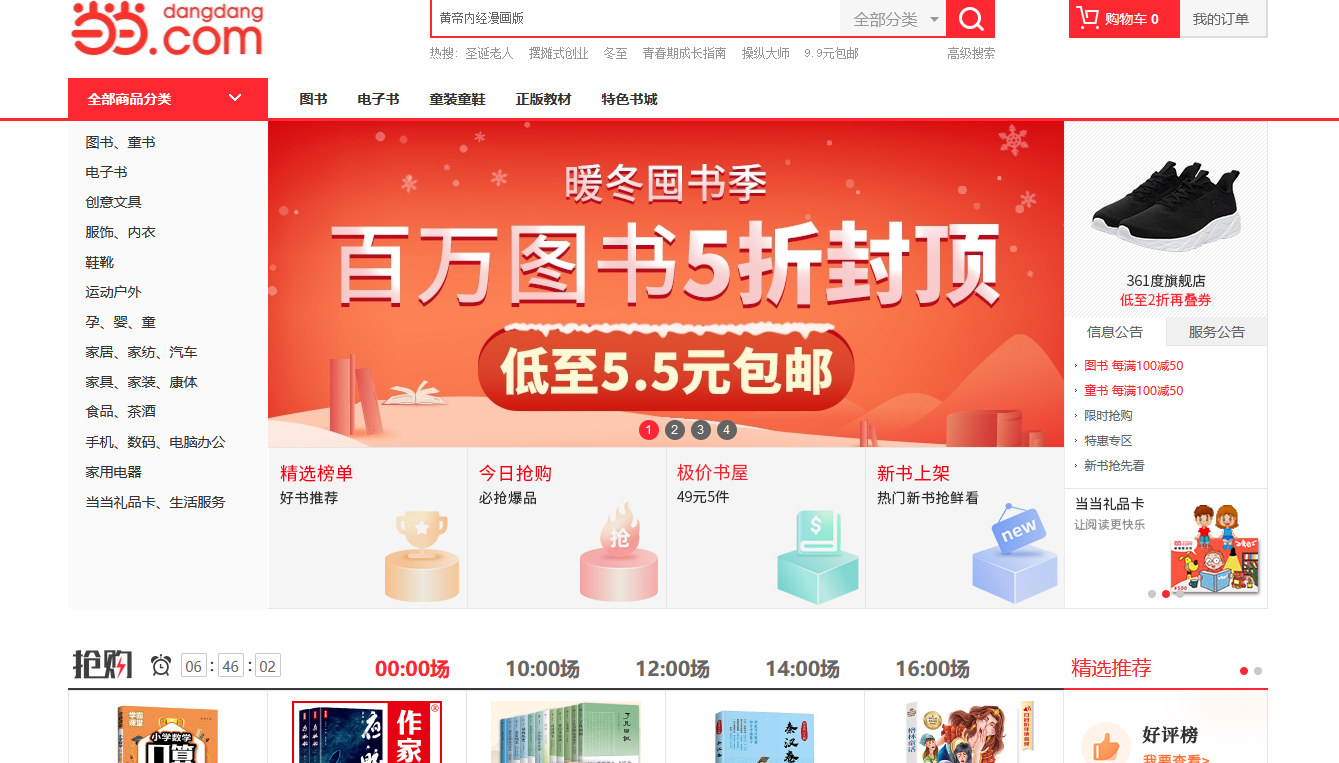 全球领先的综合性网上购物中心。超过万种商品在线热销!图书、童书、绘本、中小学教辅、文学小说、音像、母婴、家居、服装、鞋包等几十大类,正版保证,低至折(自营图书满元免运费。当当网一贯秉承提升顾客体验的承诺,自助退换货便捷又放心)